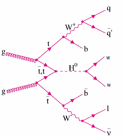 The \( \tthtoWW \) (signal) topology is shown in Figure 1. Its characteristics include two b-quarks and four W's.